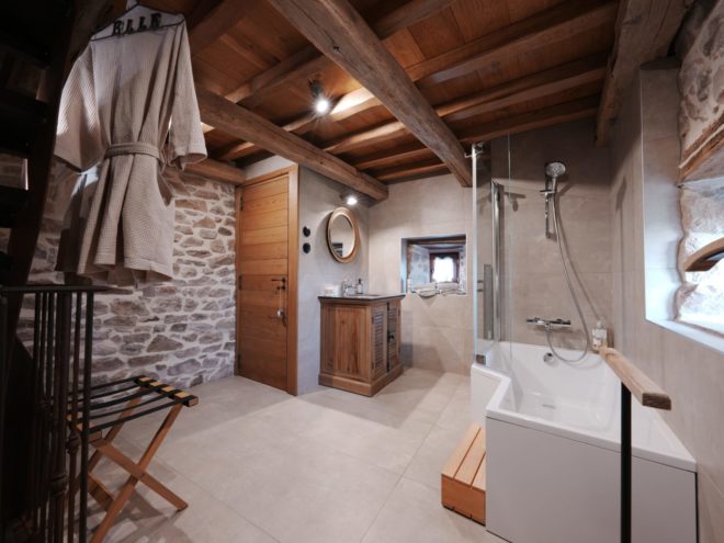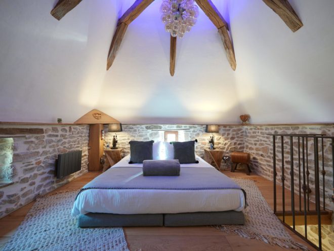 Au dernier étage, vous découvrirez une chambre confortable avec un lit king-size (180 cm) et une sublime charpente d’époque.