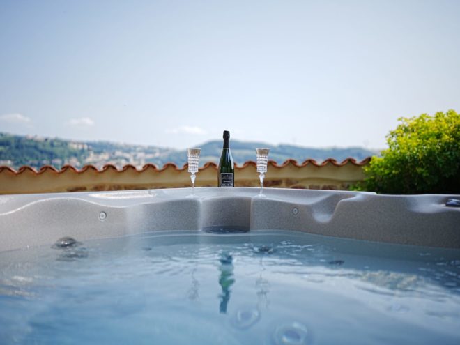 L’extérieur n’est pas en reste avec une terrasse privée, équipée de bains de soleil et d’un spa privatif en accès illimité, parfait pour se détendre en toute intimité.