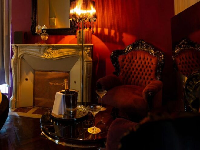 Dans une atmosphère feutrée aux inspirations baroques et contemporaines – moulures élégantes, parquet ancien, lumière douce – chaque détail est pensé pour créer un cocon où le monde s’efface et où l’intimité prend toute sa place.