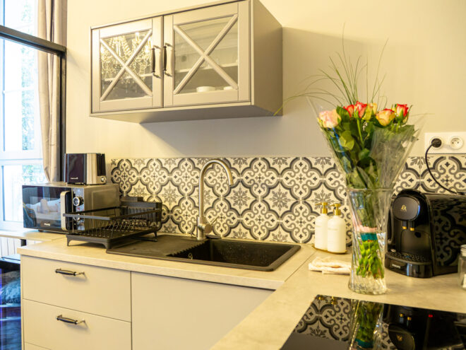 Ouverte sur l’ensemble, la cuisine équipée prolonge l’expérience avec simplicité et autonomie, pour un dîner raffiné ou un petit-déjeuner paresseux.