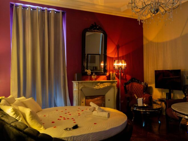 Un écrin de sensualité, conçu pour les amants en quête d’intensité, où vous êtes invités à explorer vos envies, à réveiller vos sens… Et peut-être, si vous en avez l’audace, à pousser la porte de la pièce secrète, gardienne de vos moments les plus charnels, en toute discrétion.