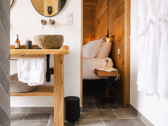 La suite « L’authentique » vous promet une expérience unique de bien-être. Le charme du bois vous offre une atmosphère douce et chaleureuse.