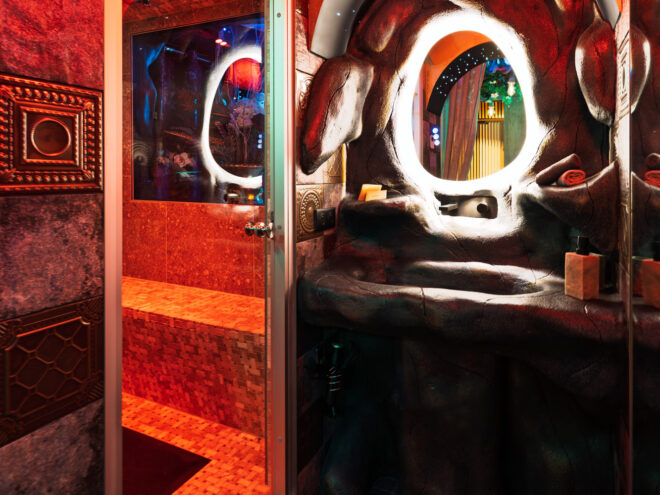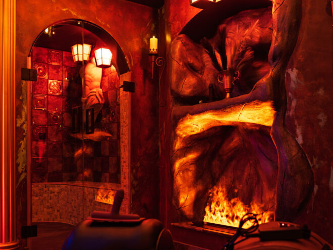 sonore immersif présent dans chaque espace. Des cheminées à vapeur d’eau renforcent le
